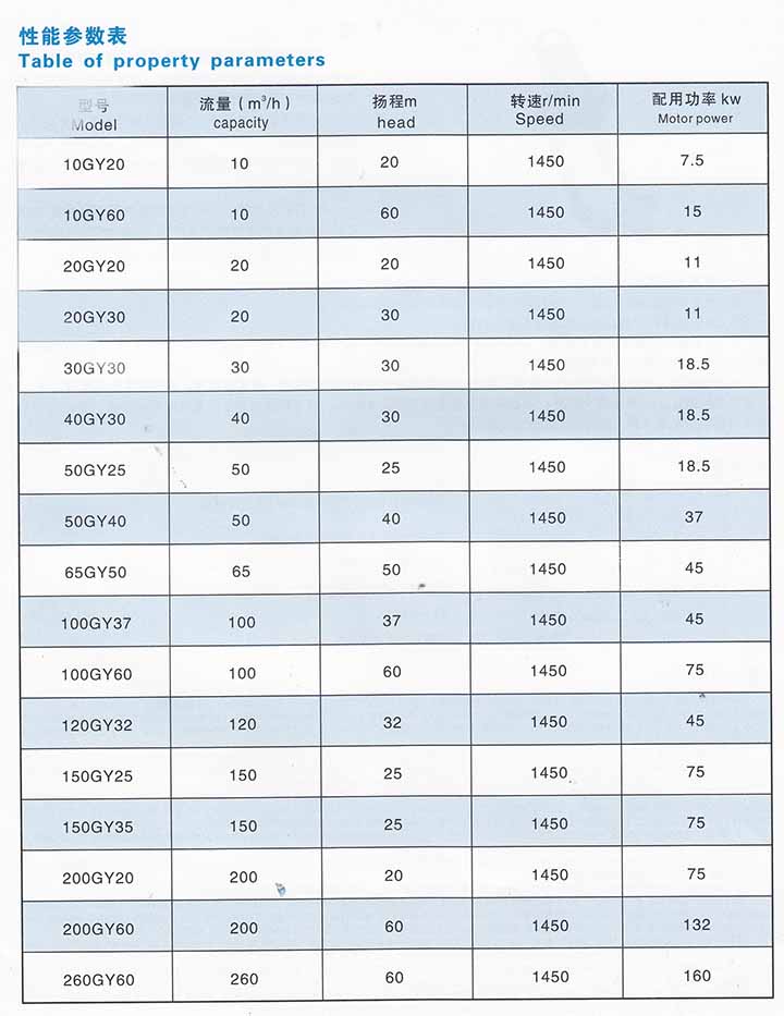 概述: GY型系列高溫熔鹽液下泵,是我廠在多年生產(chǎn)的RY型熔鹽泵基礎(chǔ)上根據(jù)用戶的需要,參考國外同類型產(chǎn)品的結(jié)構(gòu)進行開發(fā)設(shè)計的RY型升級換代產(chǎn)品。 GY系列較替代產(chǎn)品RY型熔鹽泵產(chǎn)品系列更完善,使用壽命更長,并從單一的熔鹽輸送,進而轉(zhuǎn)化為除熔鹽外,同時可作為高溫化工物料的輸送,介質(zhì)使用溫度<540℃。 GY系列在設(shè)計上充分考慮了傳動部位的冷卻,輸送介質(zhì)飽和蒸汽的密封等工況條件,對原RY型泵結(jié)構(gòu)作了大量的改進并通過試驗進行驗證: 1、軸承部位設(shè)有冷卻裝置,使軸承工作環(huán)境不受高溫介質(zhì)的影響。 2、冷卻水與軸直接接觸,介質(zhì)的高溫不會因軸而傳遞到轉(zhuǎn)動部份。 3、獨特的結(jié)構(gòu),確保冷卻水絕對不進入介質(zhì)。 4、無須維修耐高溫的密封裝置,使被輸送介質(zhì)的飽和蒸汽不致于逸出,(特別在輸送熔融鹽的工況,即使少量的亞硝酸鹽飽和蒸汽也是對人體有害,致癌。) 多種耐高溫、耐腐蝕耐磨材料的組合,使GY系列高溫液下泵不但適用于如:膜式法固堿,有機氟裂介使用的二元、三元組份的熔鹽,也可使用于磷肥、石油裂解等裝置的高溫流體輸送。由于徹底杜絕了熱量傳至傳動部位,因此GY系列泵較同類型高溫液下泵(熔鹽泵)壽命大大提高。
